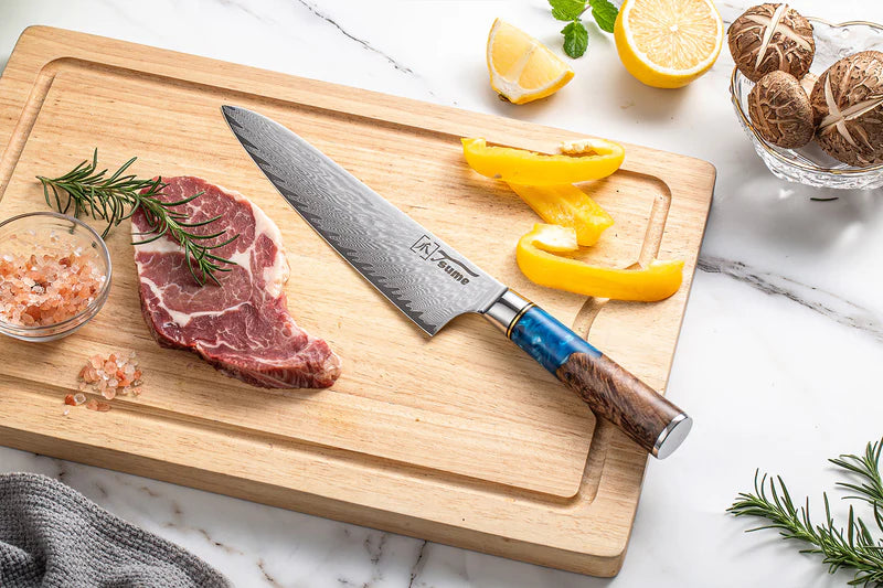 Das Kochmesser, Chefmesser oder auch "Gyuto" ist ein vielseitiges Werkzeug, das für nahezu alle Schneidetechniken in der Küche eingesetzt werden kann.