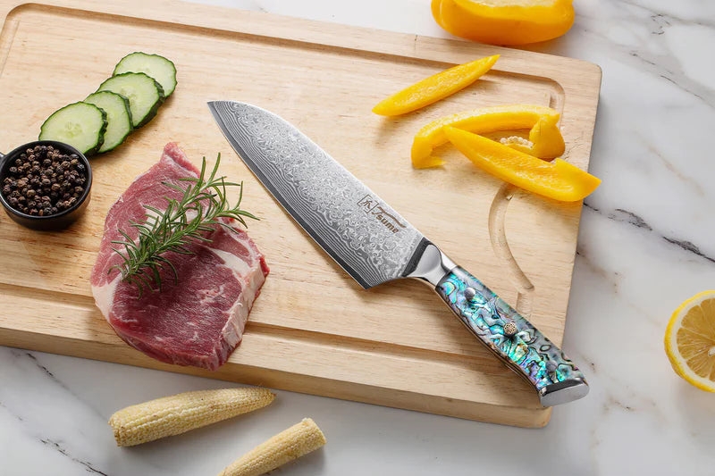 Das Santoku ist ein herausragendes Küchenmesser, das für eine Vielzahl von Anwendungen geeignet ist, einschließlich Fleisch, Fisch und Gemüse.