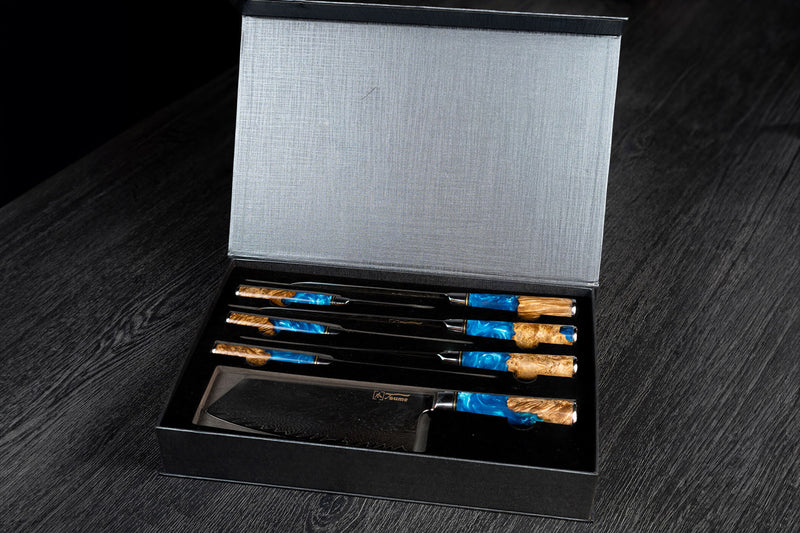 - Siebenteiliges Profi-Set: Für ambitionierte Köche, die das Beste suchen. Dieses umfangreiche Set bietet professionelle Messer für jede Herausforderung in der Küche.